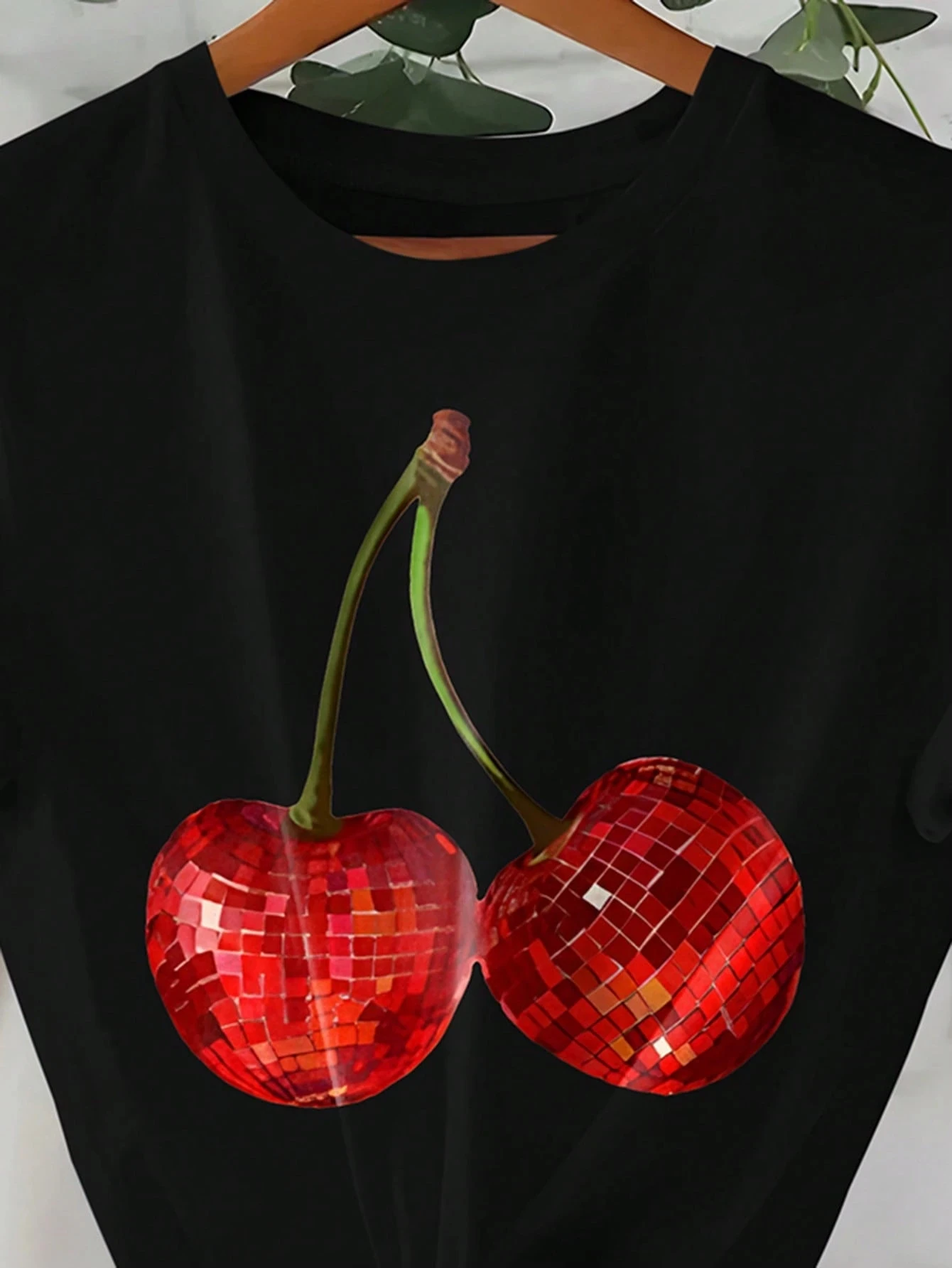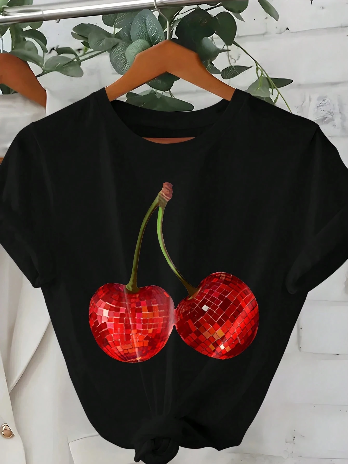 Plus Size Summer Short Sleeve T-Shirt SHEIN EZwear Women Casual Cherry Print Short Sleeve T-Shirt